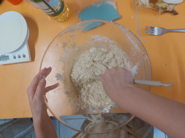 - restliche Zutaten dazugeben und gut verrühren bis ein schöner Teig entsteht